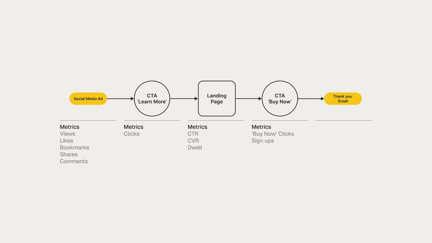 In this phase we launched our product range with a series of ads on social media that drive to a simple landing page. Measuring each consumer journey we are able to identify the ads and messaging that resonate the most with our target audience. Calculating an understanding of CAC, CTR and CVR, amongst other data, we are able to analyse our results against industry benchmarks and assign a level of appeal with real data, from real people.