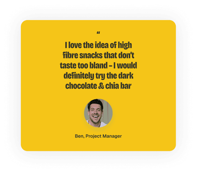 Taking our learnings from the first phase, we interviewed fifty potential customers who fit our primary demographic. We learned that the primary benefit of high fibre had strong appeal but that Crunch’s savoury taste wasn’t resonating - customers expected a sweet breakfast offer rather than a savoury snack.